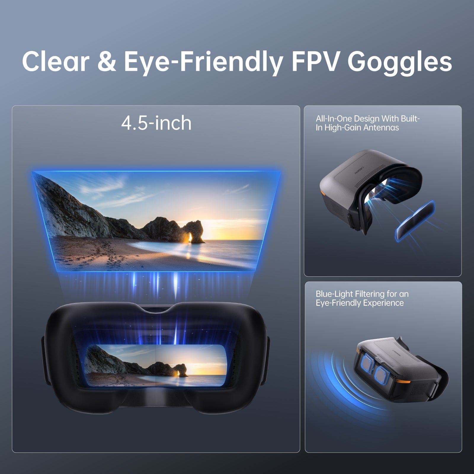 Dive into the action with our 4.5" high-resolution FPV display. Every detail, from the sharp edges of urban landscapes to the vibrant hues of nature, springs to life with stunning clarity and rich color.