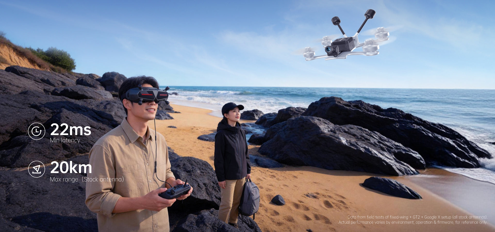 - 20km Range & 22ms Latency: Integrated design delivers stable digital HD video transmission up to 20km with low 22ms latency for precise, real-time control.