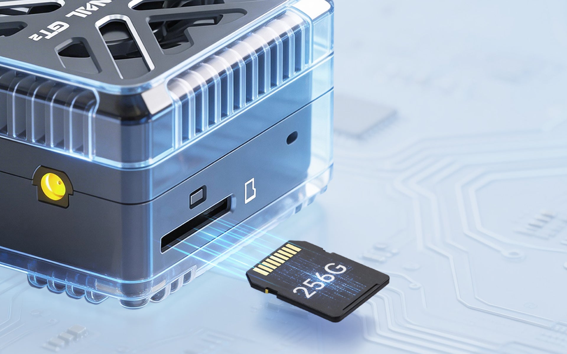 Yes. The GT2 features a built-in, spring-loaded SD card slot that supports memory cards up to 256GB. You can easily record high-definition flight footage directly on the VTX, saving your best moments effortlessly.