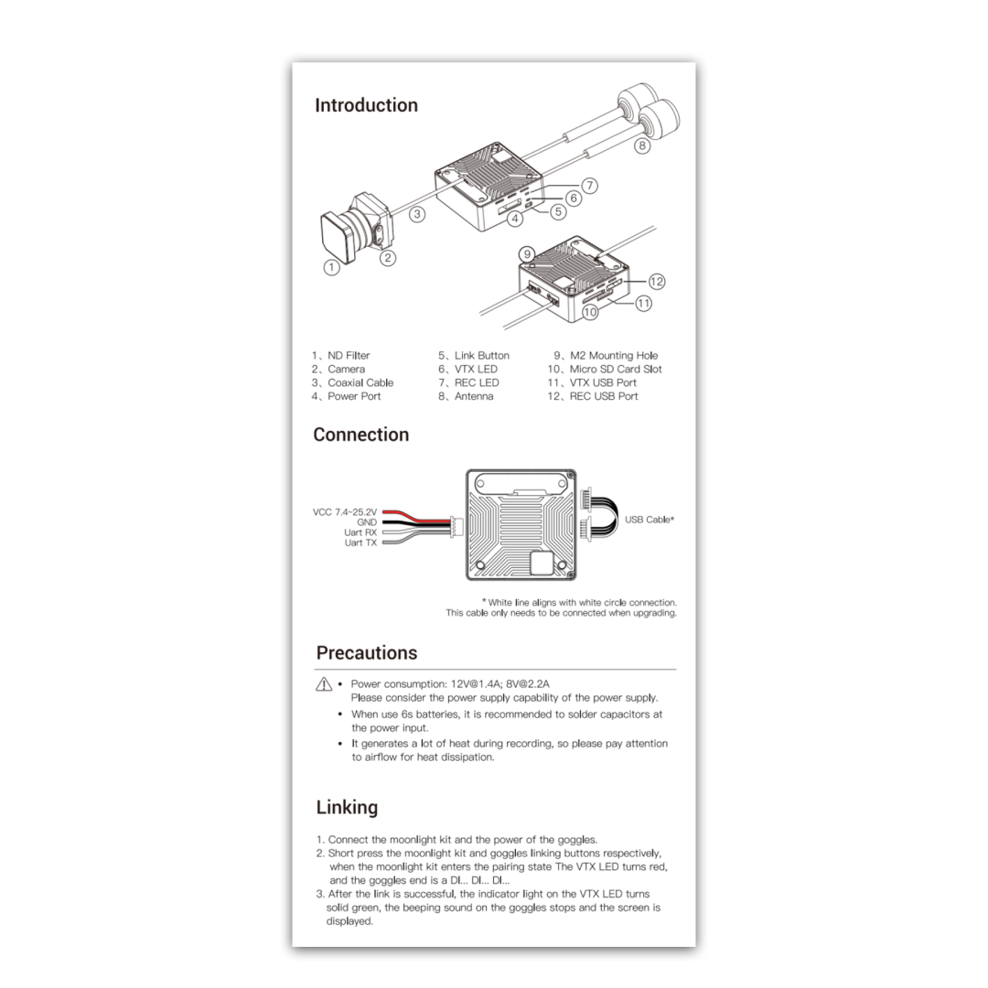 View Moonlight CameraInstallation Guide, compatible with GT VTX, VTX V2 Module, Mini VTX V3 Module, Mini 1s And Mini 1s Lite Module.